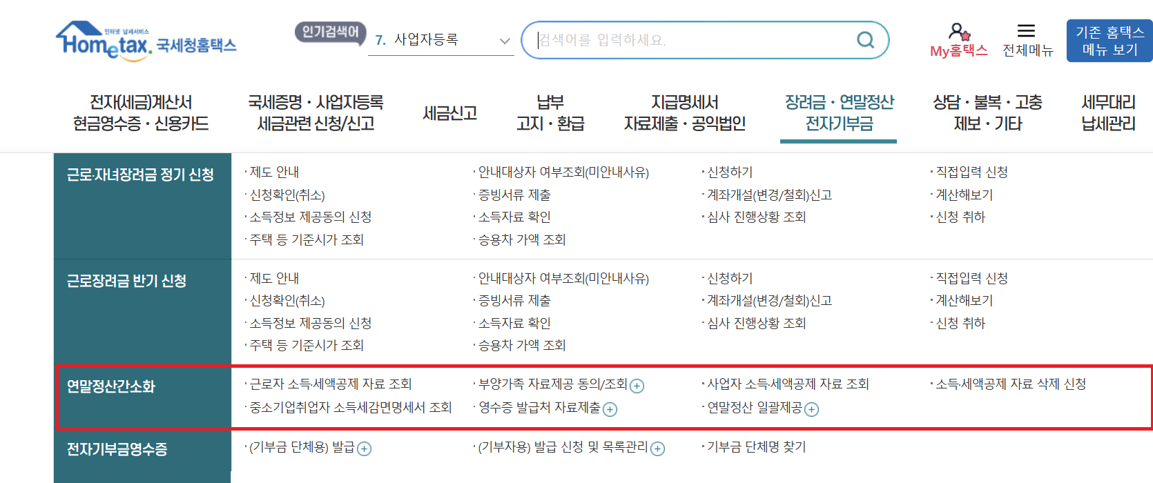 - 홈택스 웹사이트 접속 및 로그인(공인인증서, 공동인증서) > 화면 상단 메뉴에서 '조회 / 발급' 항목을 클릭 > 연말정산 간소화 메뉴 선택 후 미리 보기 항목에서 확인