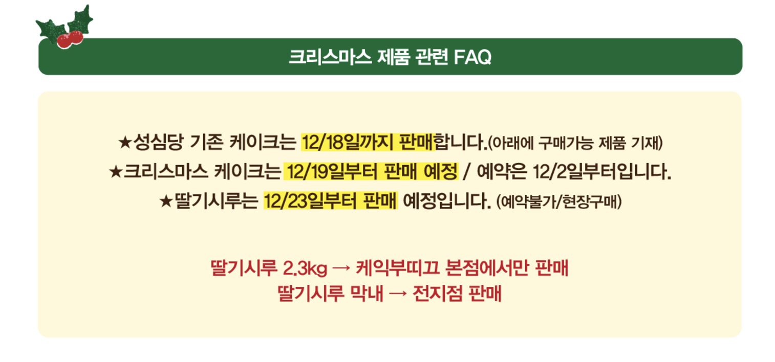 ✅크리스마스 케이크 : 12/19일부터 판매 예정(예약은 12/2일부터)